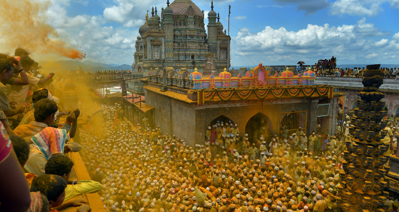 The most celebrated festival at Jejuri is the Khandoba Festival, during which devotees gather in thousands to seek blessings. One of the most unique and exhilarating aspects of the pilgrimage is the tradition of showering turmeric powder—known as haldi—on the deity and devotees alike, symbolizing purity, prosperity, and auspicious beginnings. The atmosphere during this festival is electrifying, filled with devotional singing, dancing, and vibrant processions.